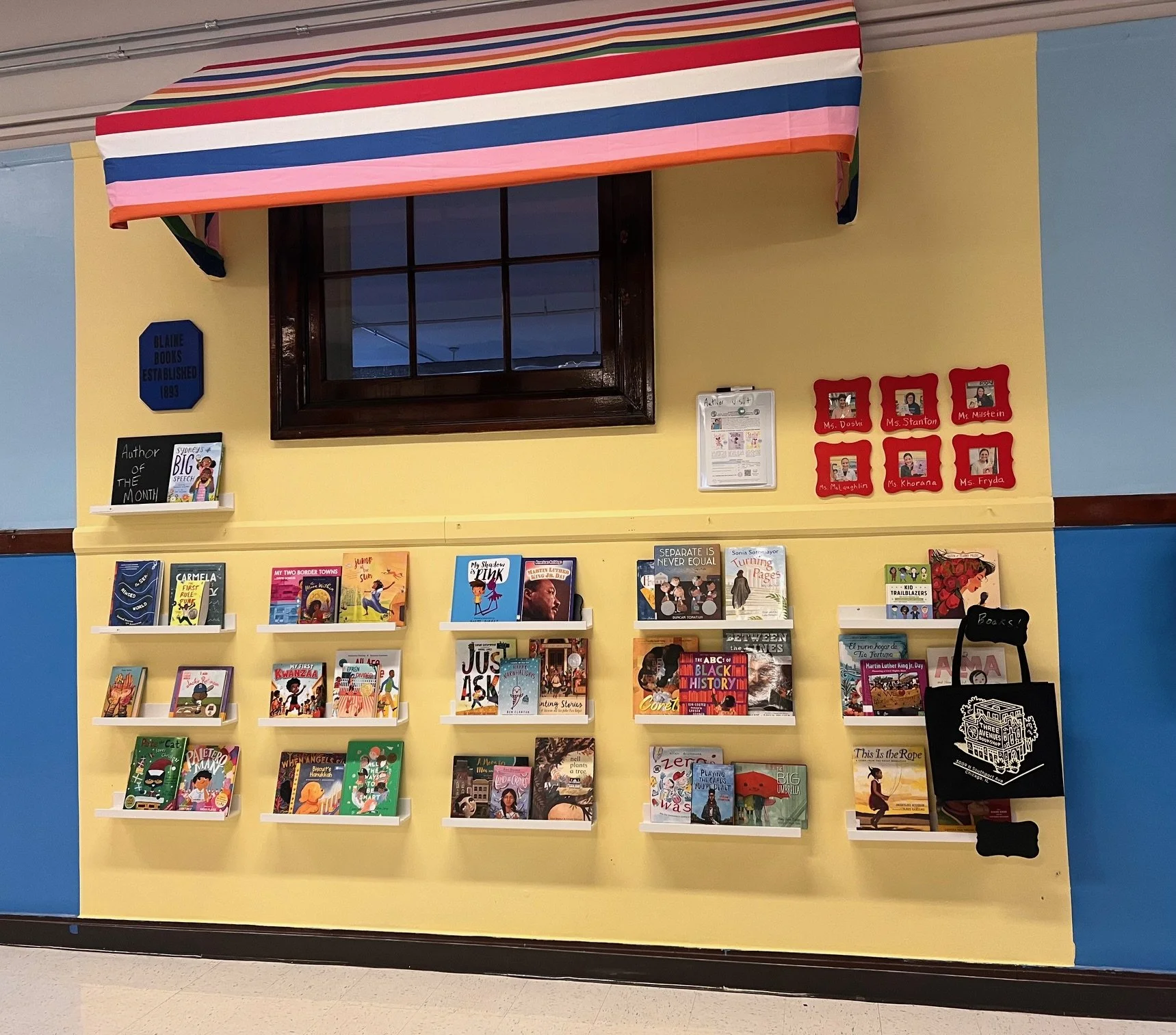 Vintage Newspaper Stand Book Display - Blaine Elementary School, Chicago, Illinois, October 2024